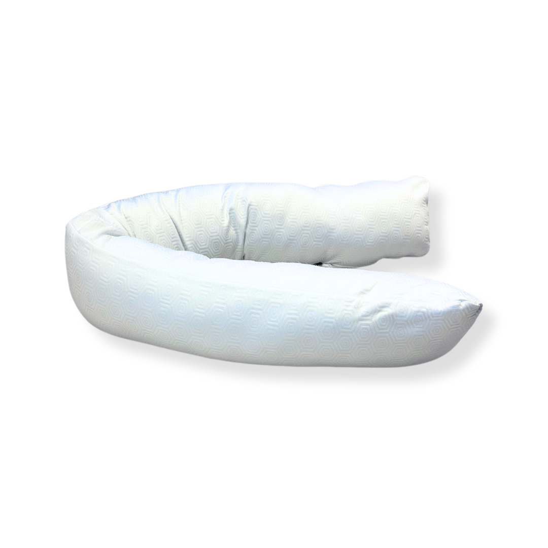 The full body pillow with bamboo cover is perfect to use for pregnancy, surgery recovery, nursing pillow, easing joint pain or just for a good cuddle. Providing the perfect amount of support for your head, body and legs. The full body pillows is interior consists of shredded foam and ball fibre.